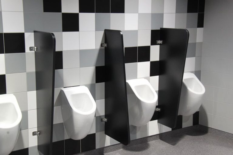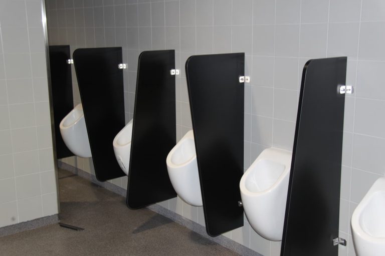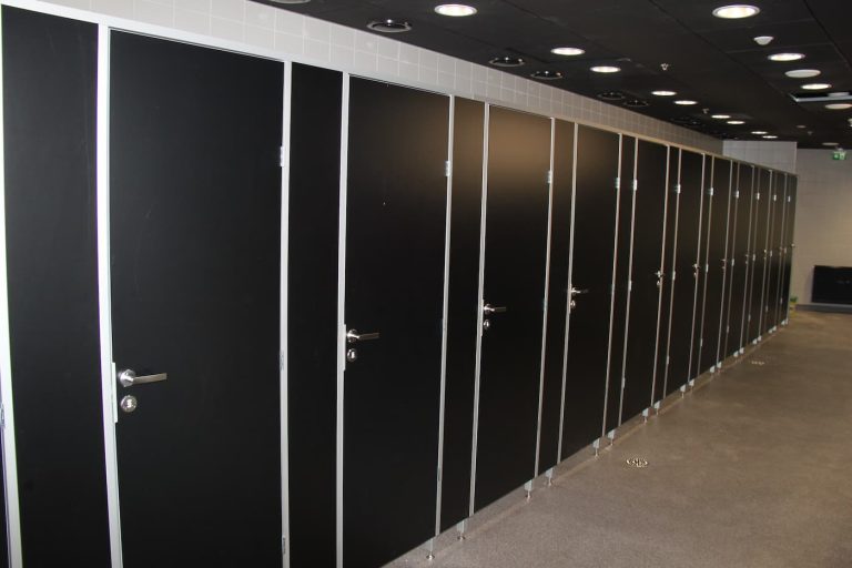 - Custom-made cubicles and urinal partitions to match the arena’s layout