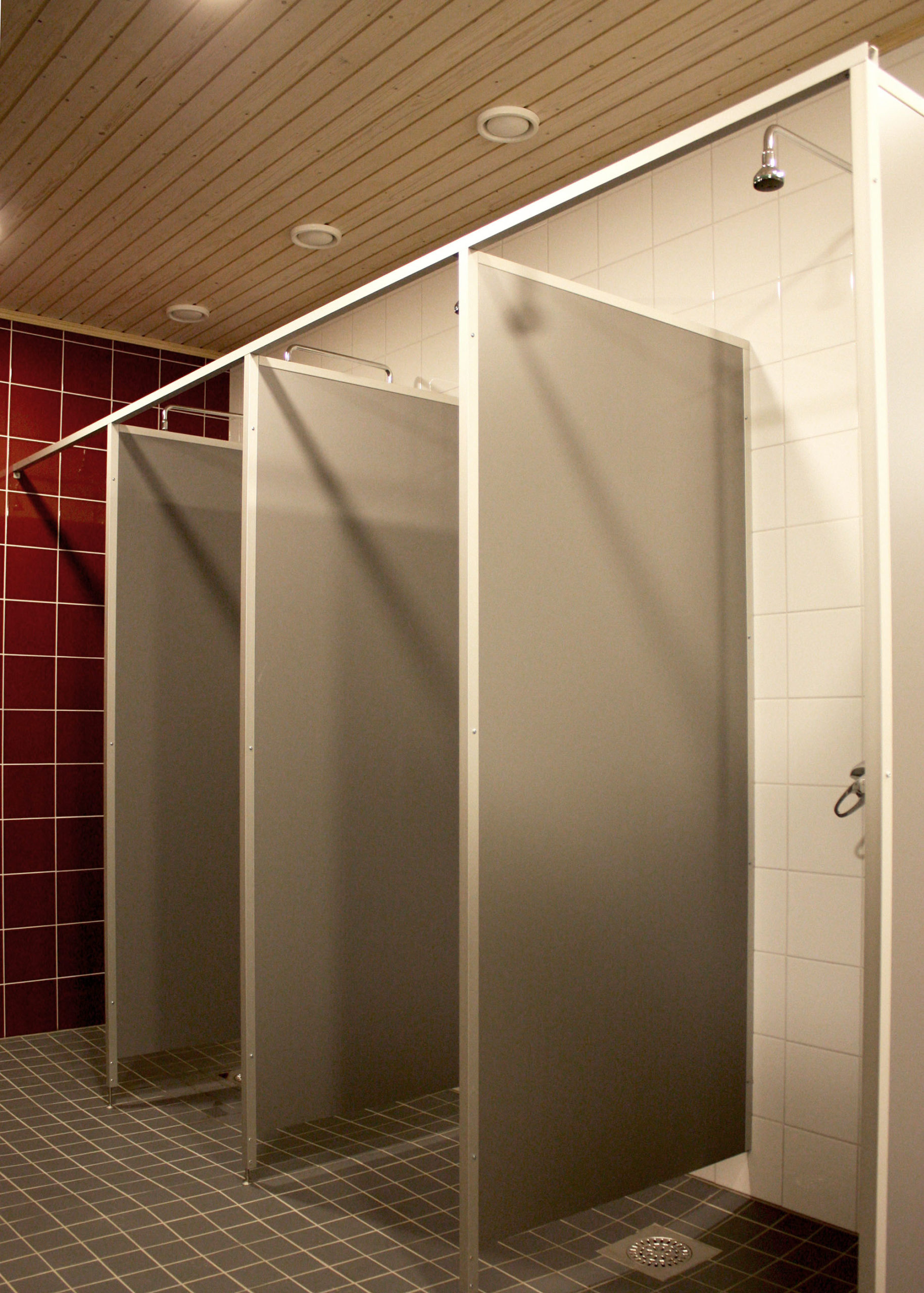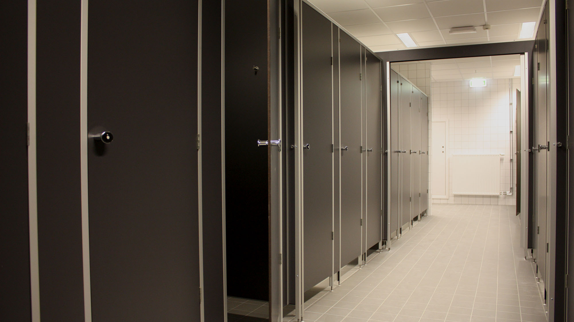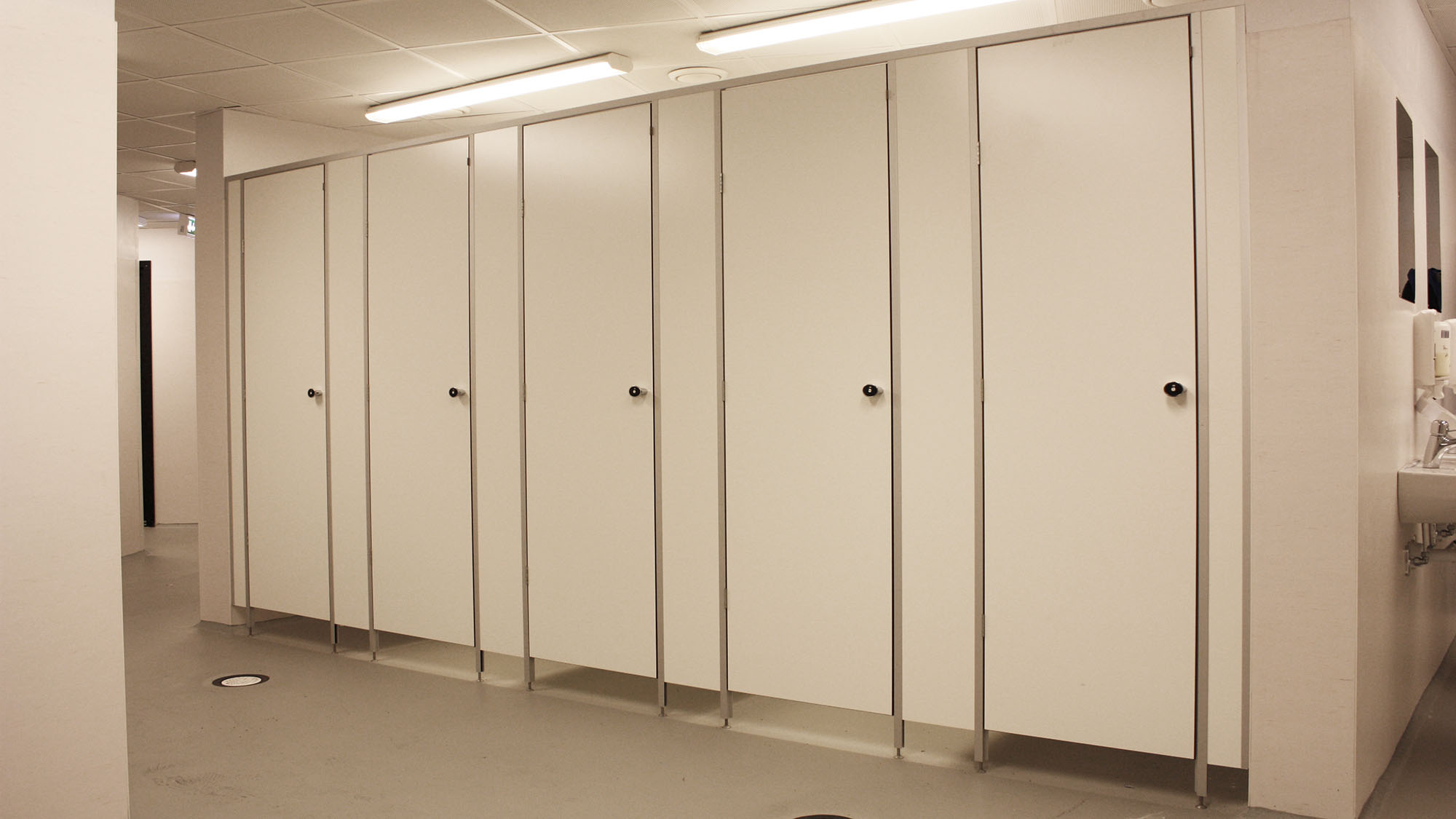 Partitions are always made to order according to the customer’s needs. The stock colours of the compact laminate are white, light grey, grey and dark grey. Other colours available on request.